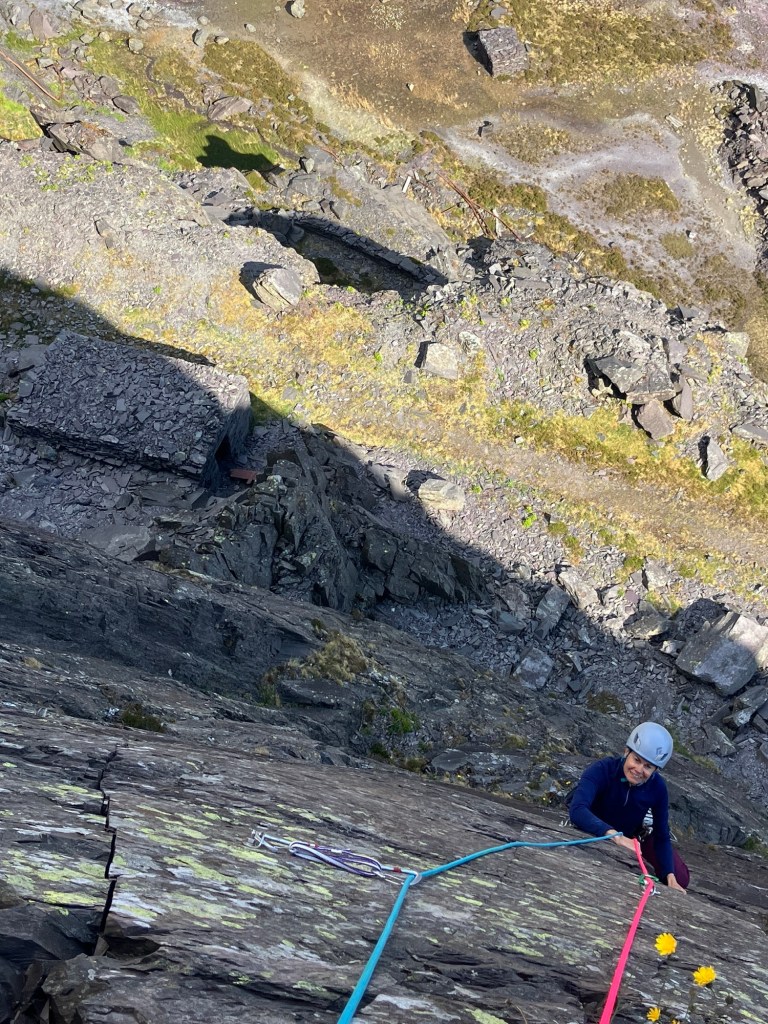 Feeling re-fuelled, we carried on up the hill to the slate quarries for a couple of quick climbs.