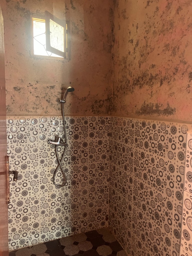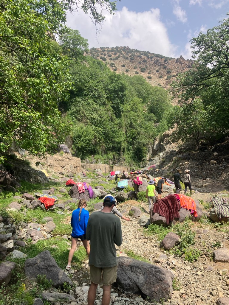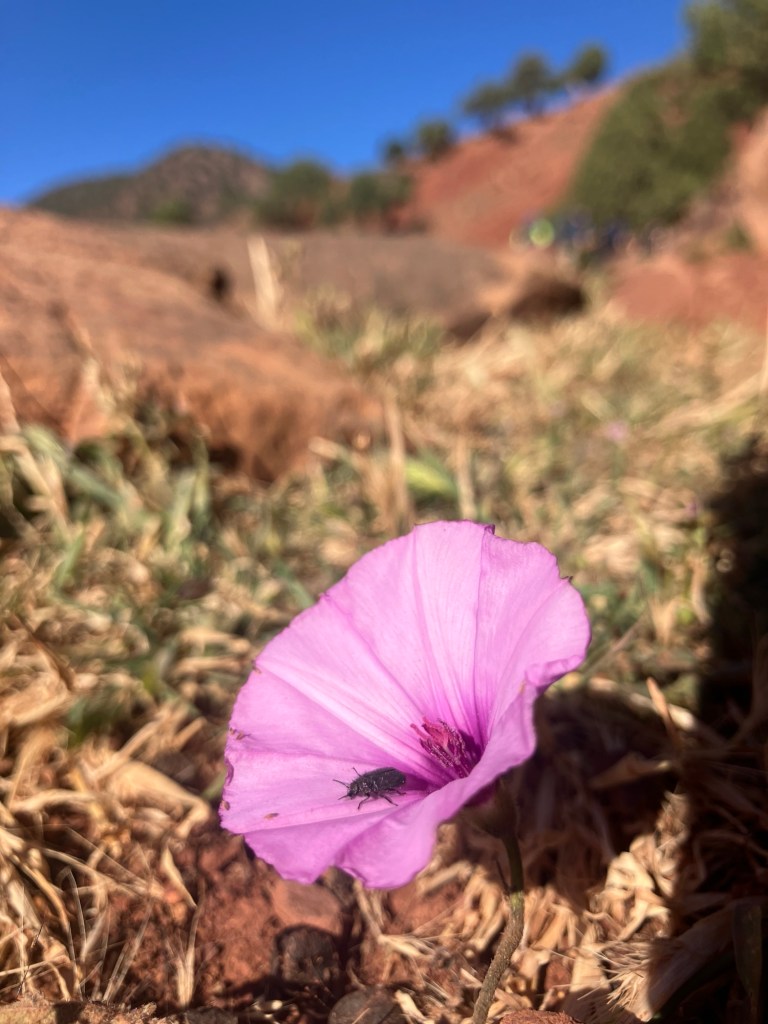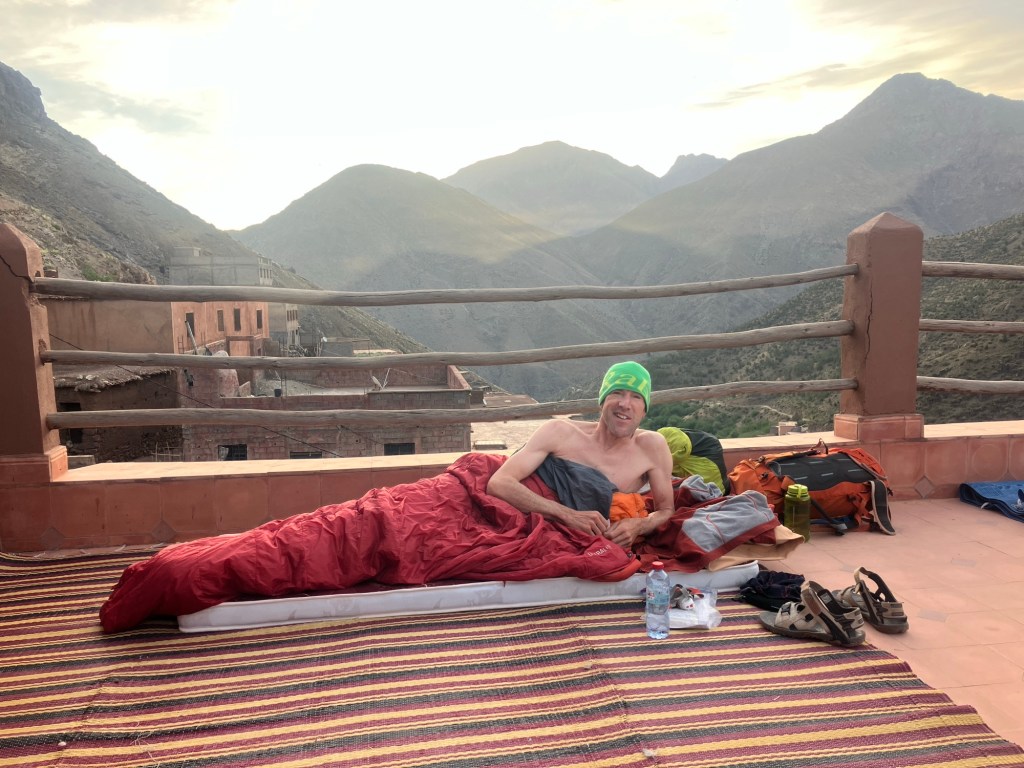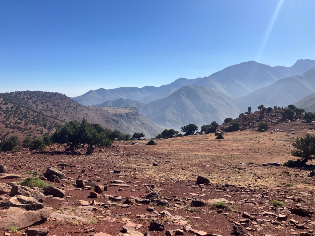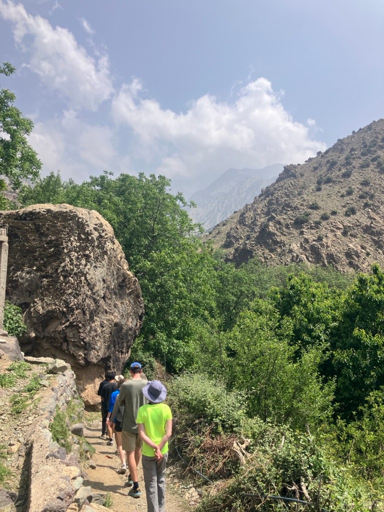 It was a steep scree hike down to the village where we are now. Tizi Oussem. The village is currently being rebuilt after the 2023 earthquake. Some of the houses are still half hanging from the hillsides. It was quite an eye opener to see the destruction.