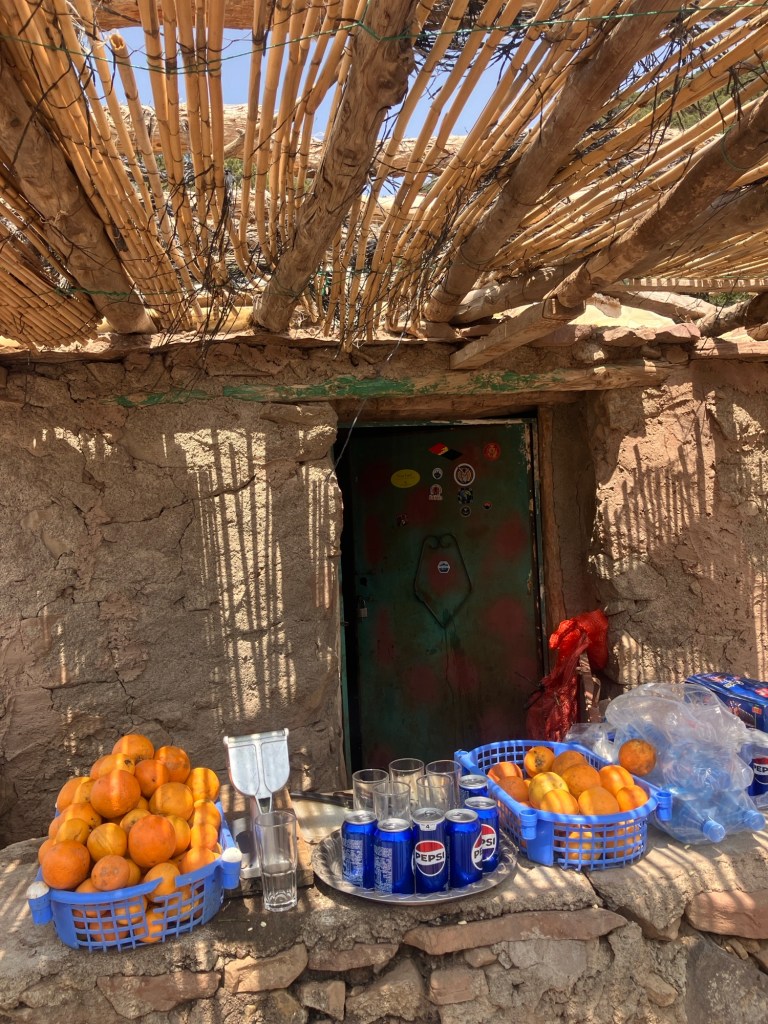 Between drinking very sweet mint tea, life is tough here. The villagers were still working the fields as we went for dinner at 19:30 after a game of footy with some kids.