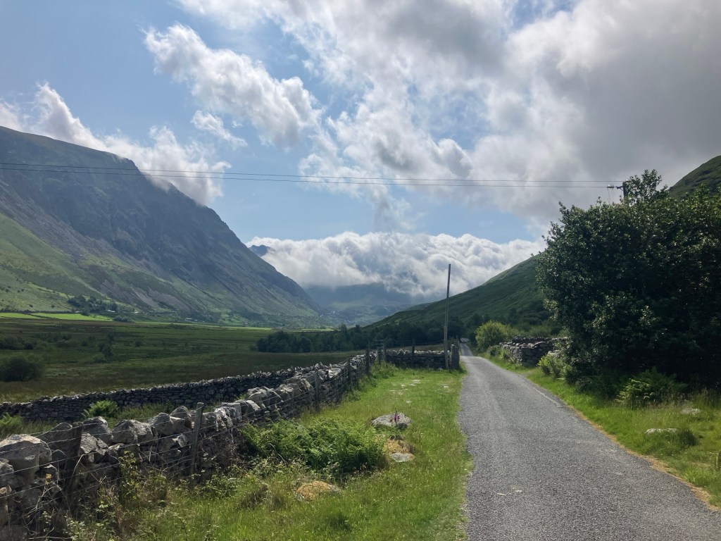 Cloud was filling in the end of the valley at Ogwen Cottage, but we remained in the sun as we picked our way across the boggy ground.