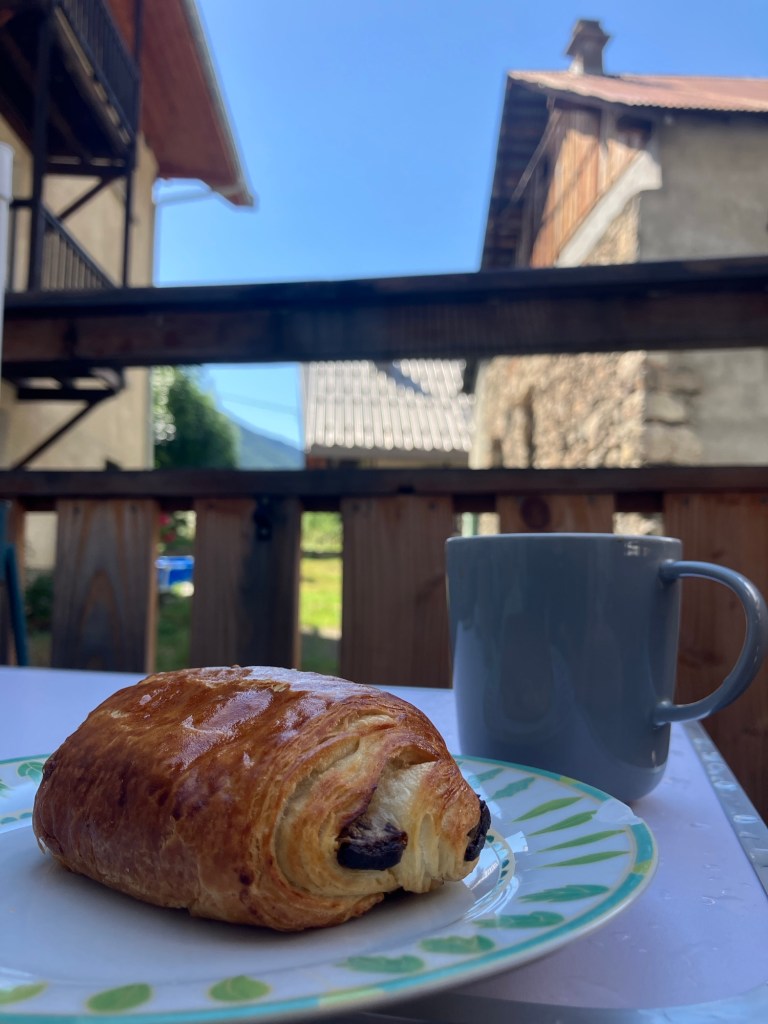 It’s early days but so far, a very stunning area and a nice little village. There is a little shop, so fresh baguettes are available each morning! Most importantly, the apartment is in an old chalet which is gloriously cool inside, compared to the heatwave weather outside!