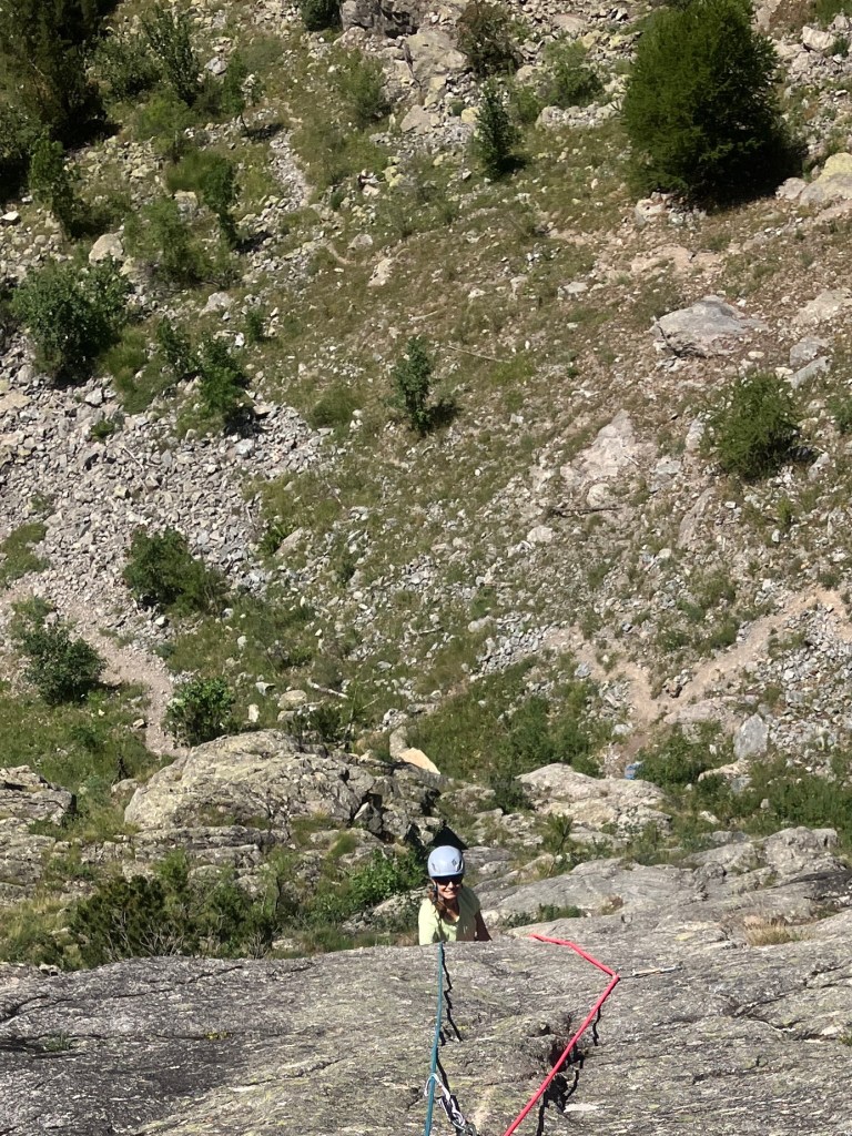 It was absorbing climbing that required focus and proved a good way to reduce the thoughts going to our busy brains! Clare’s final pitch kept going right up to the final move, which was delicately done while holding our breath!