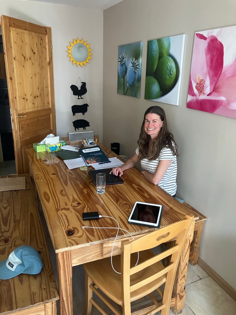 Meanwhile, back at base, Clare has been training her new licenced facilitators, who are now ready to go out and deliver Clare’s ‘Wellbeing Ambassador Programme’ – a course that she has designed through her wellbeing training company Goldcrest Training. A productive time in the Goldcrest alpine office!