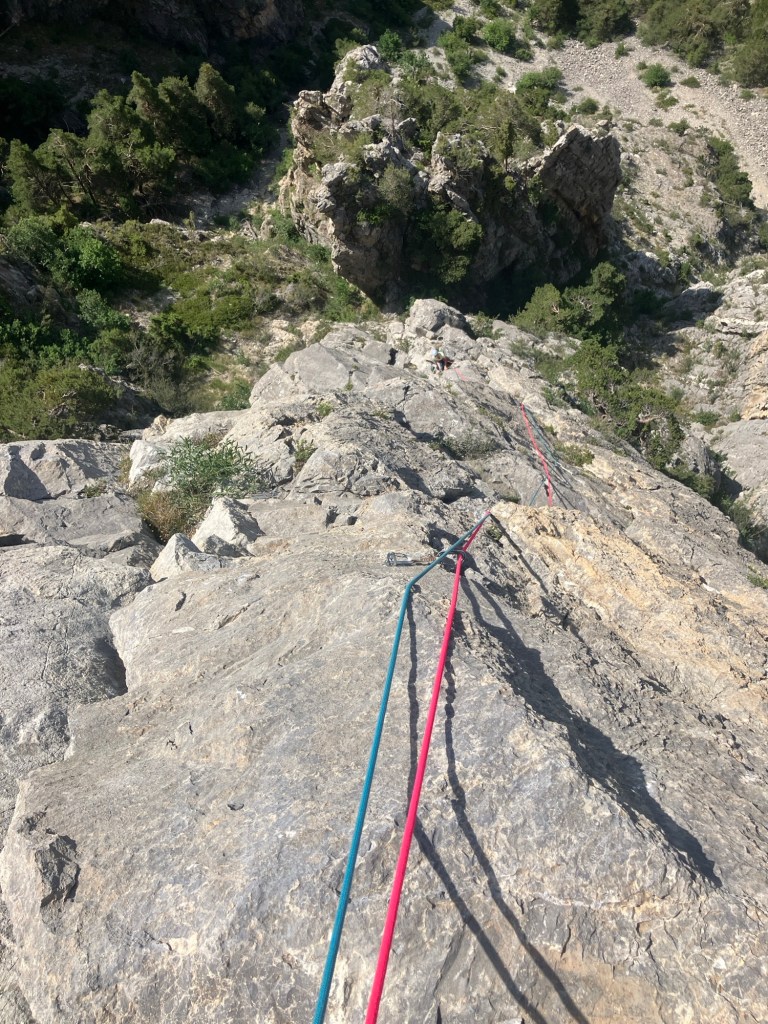 The climb was great, but not as well equipped as we’d anticipated. There were long run-outs between some of the bolts and several of the belays had only one bolt, so required additional cams (which we were not carrying!). All of this helped to keep us extra focused as we gained height.