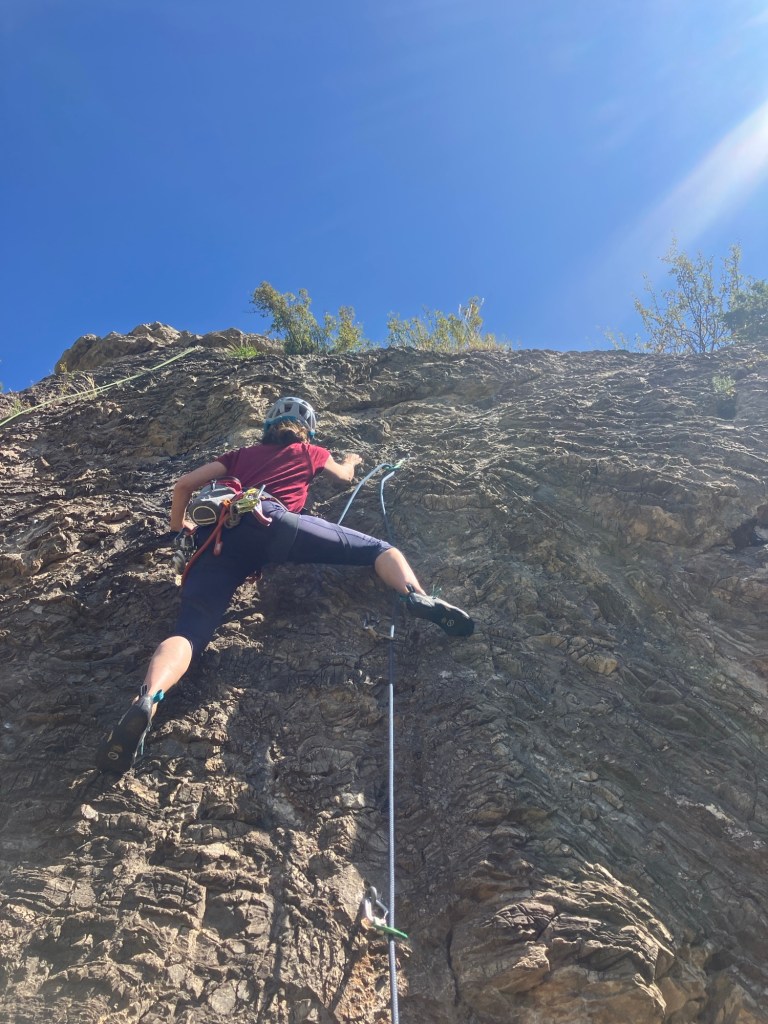 Stormy wet weather up in the mountains meant that we descended the valley a little today to climb some single pitch routes downhill from our house. It was nice to get a new view and be able to climb in the sunshine without getting toasted. A contrast to a few days ago, where the rock in Ailefroide was almost too hot to touch!