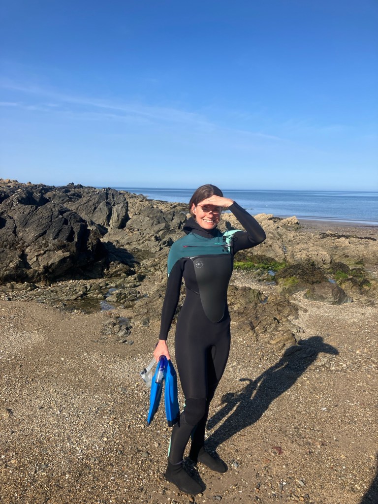 On Sunday morning, we were up and out early as the conditions were looking good for a snorkel at the beach. We got a the last parking spot and enjoyed another breakfast by the waters edge before getting in. This time we had wetsuits, so lasted much longer and didn’t get cold. Clare saw a huge crab and we both saw a Dogfish (the look like mini sharks) that was nearly a metre long!
