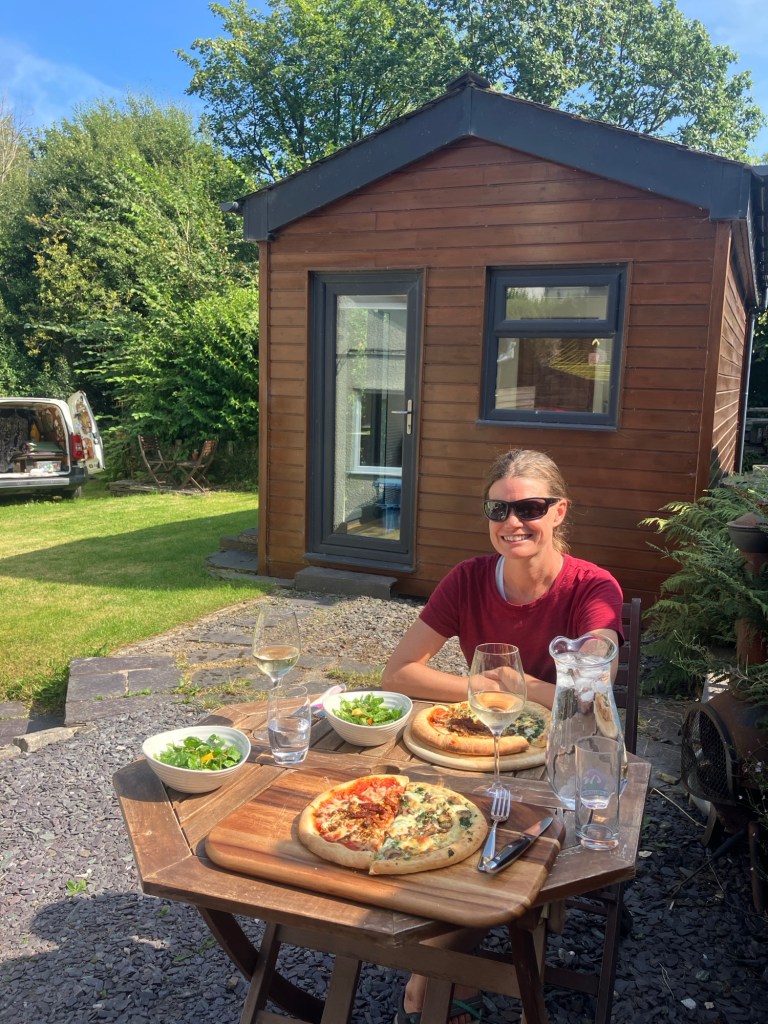 We almost got a pizza at a pop-up beach cafe, but there was a 45 minute wait time – an hour later, we were back home enjoying our own cooked pizza – but this time with a fresh salad and even a cheeky glass of late afternoon wine! Bliss!