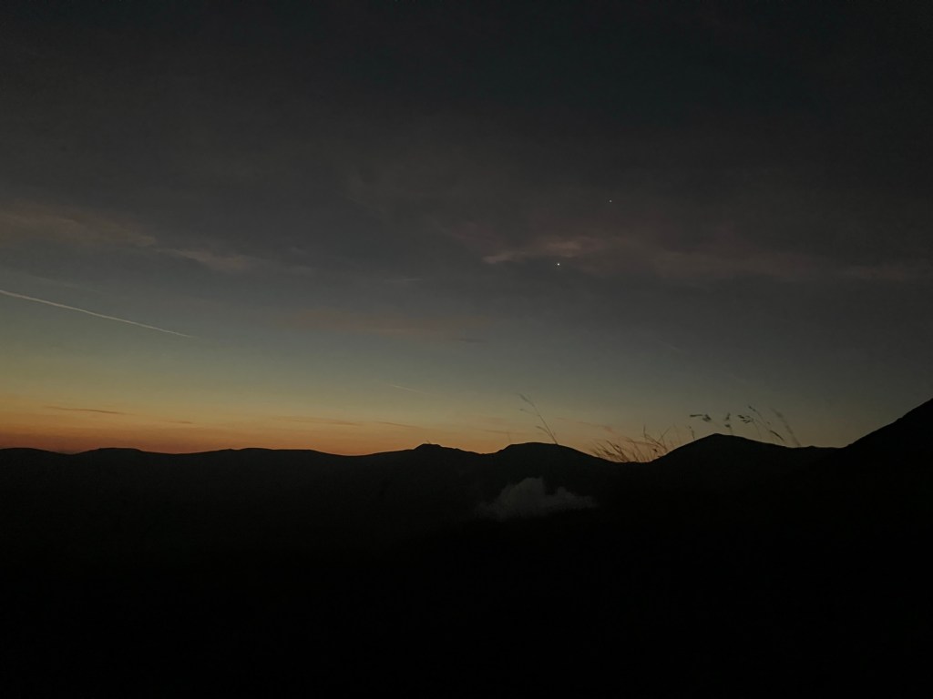 We descended slightly until we got back to the very first ‘potential’ place we’d spotted. It was just about sheltered enough, which was lucky as neither of us fancied walking back down in the dark! We lay out our sleeping bags and got straight in as the stars came out. Satellites tracked non-stop across the sky all night and we saw a good amount of shooting stars before the moon rose over the horizon. The best moment as when we both saw a massive shooting star that seemed to go almost right across the sky from horizon to horizon. Incredible to see!