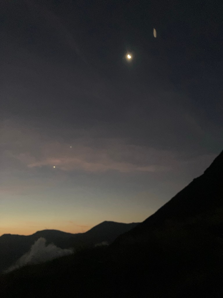 There was a slight cloud inversion below us and the warm wind meant there was no dew so nothing was even damp. Perfect camp conditions!
