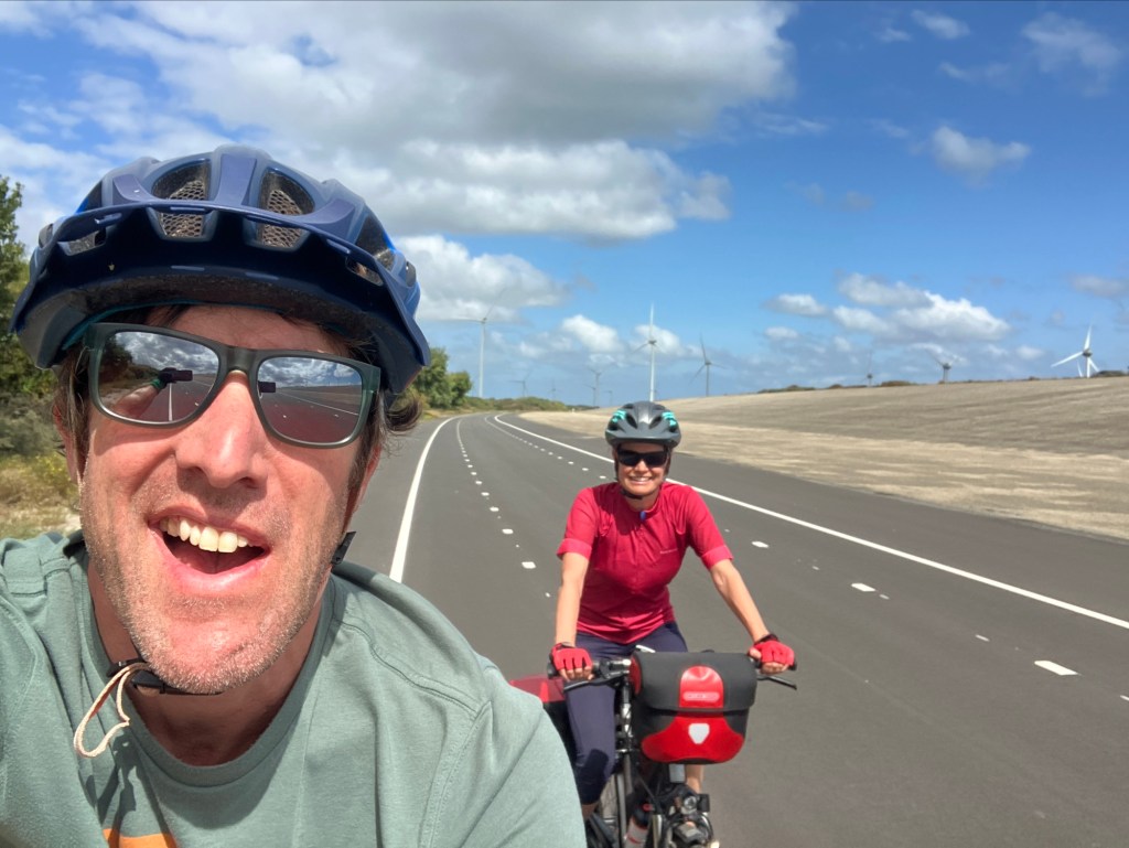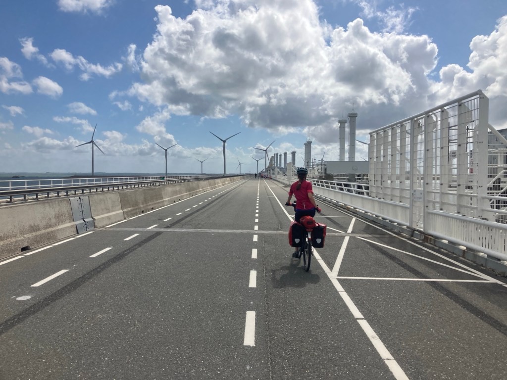 We passed loads of wind farms, and once past the busy beach entrances, had a huge cycle highway to ourselves. With the wind at our backs we travelled at 20mph with ease!