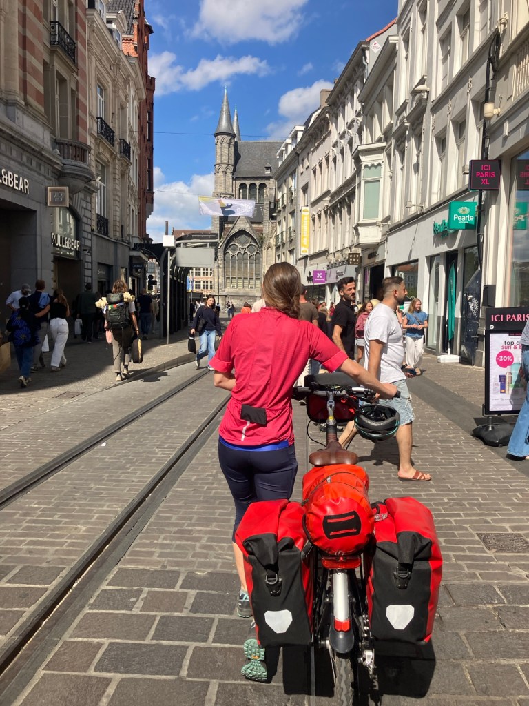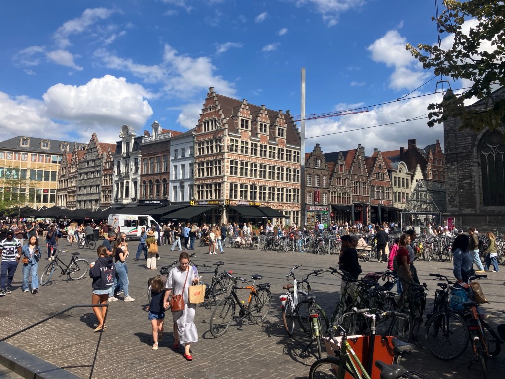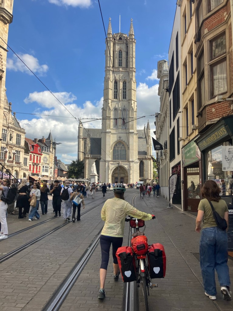 Finally, way up ahead, the spires and towers of Ghent city centre came into view and we knew we were getting close.