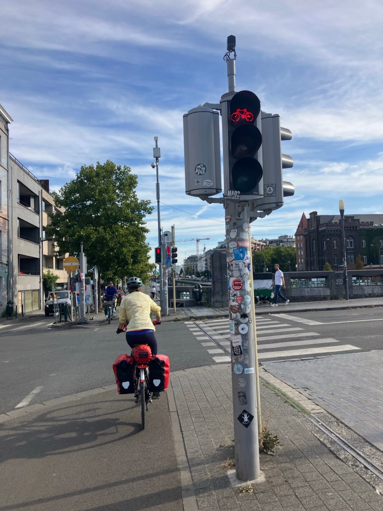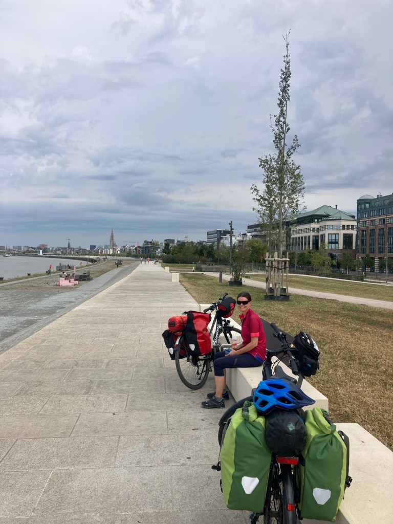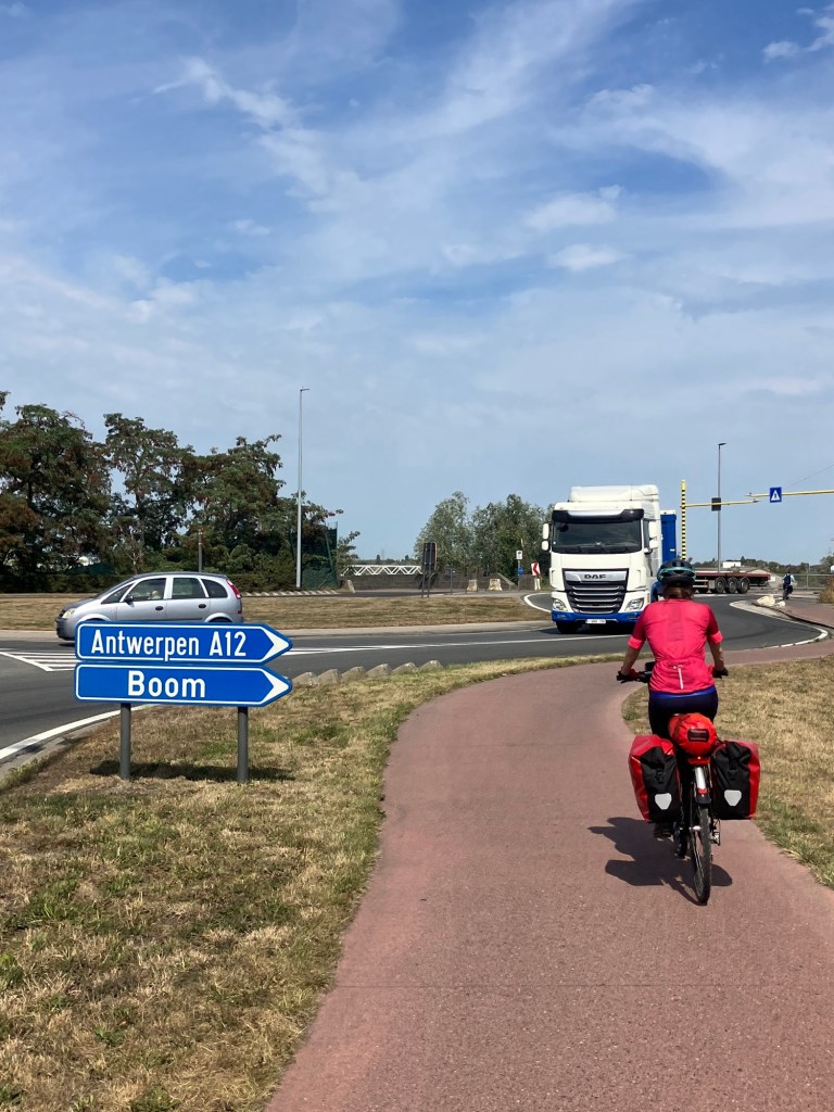 Exiting Brussels from the north was much less stressful than our arrival as we were able to generally follow a riverside trail out of the city and only had to negotiate a few road crossings that were clogged up with roadworks, commuters and delivery drivers. The bike lanes even have their own separate traffic lights but in the city centre with a section of road half dug up if felt like a bit of a free for all!