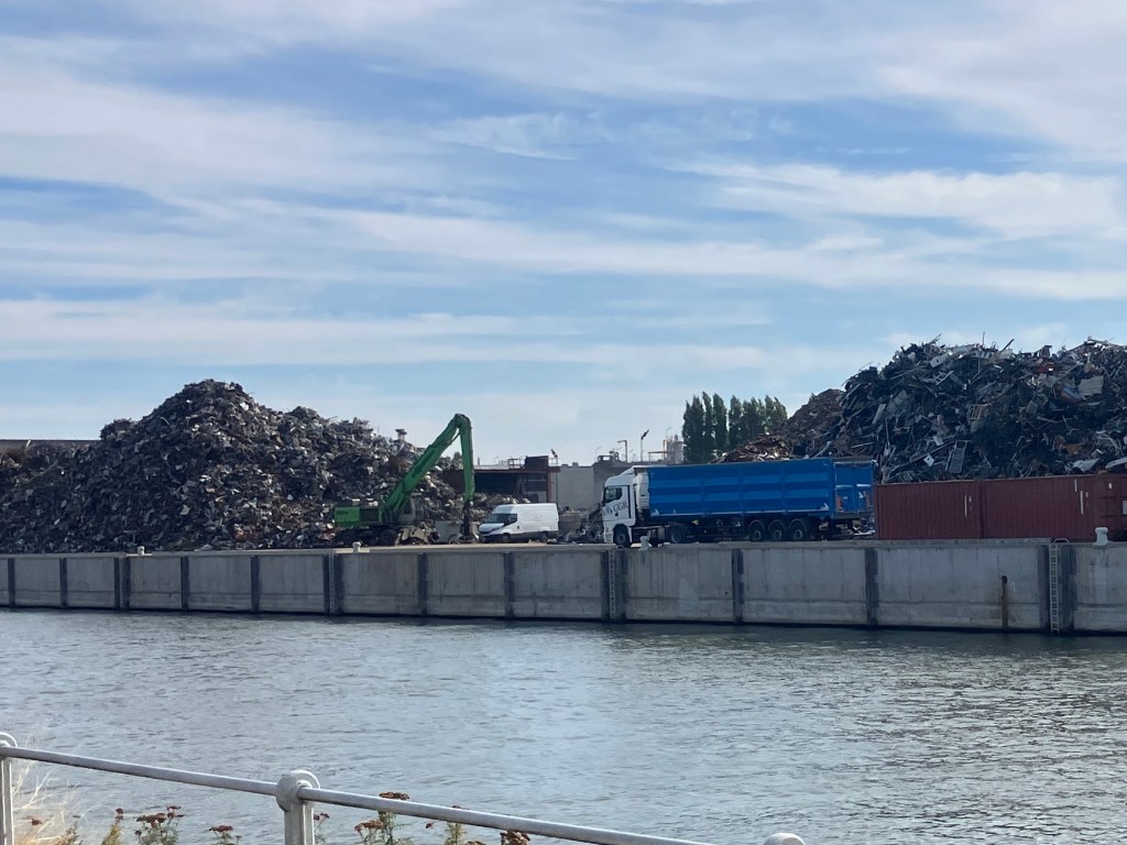 We passed by huge mountains of scrap metal and every grade of rock chipping, hardcore and ballast, all neatly piled up and ready to load onto a barge. Where it was all heading next was anyone guess?… especially the huge bales of plastic waste…