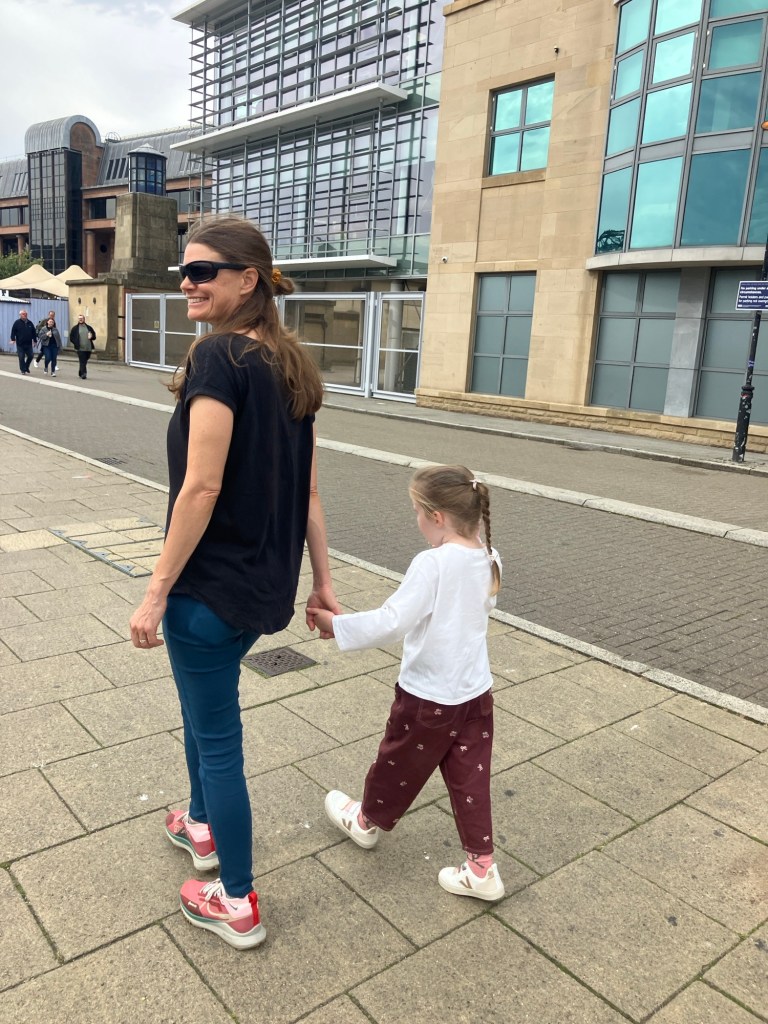 It was the Great North Run on Sunday in Newcastle, so we walked down to the river where food trucks and runners were everywhere and a general good vibe was in the air. Overcast, but still warm enough for shorts.