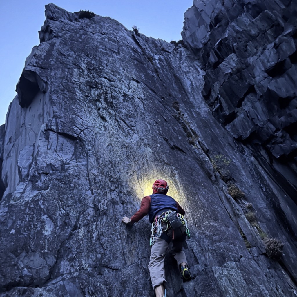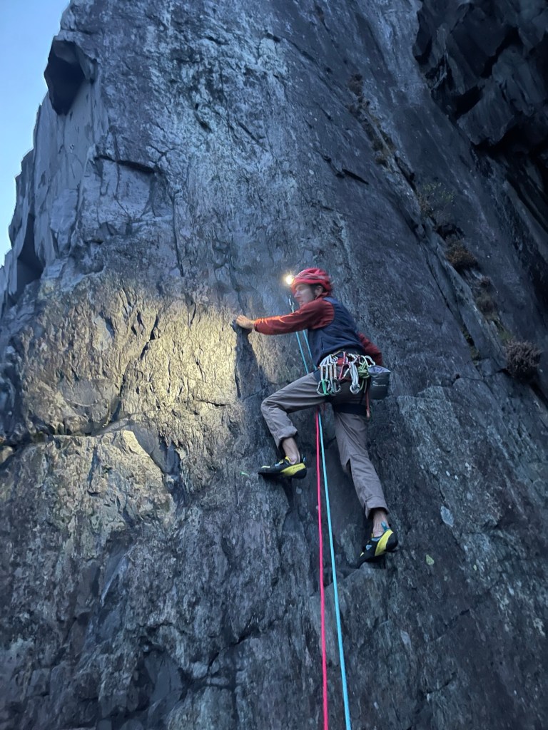 It’s the time of year when having a head torch in your rucksack becomes essential. Tim and I nipped out last night for a quick climb in the slate quarry and discovered that it’s starting to get much darker much earlier than anticipated!