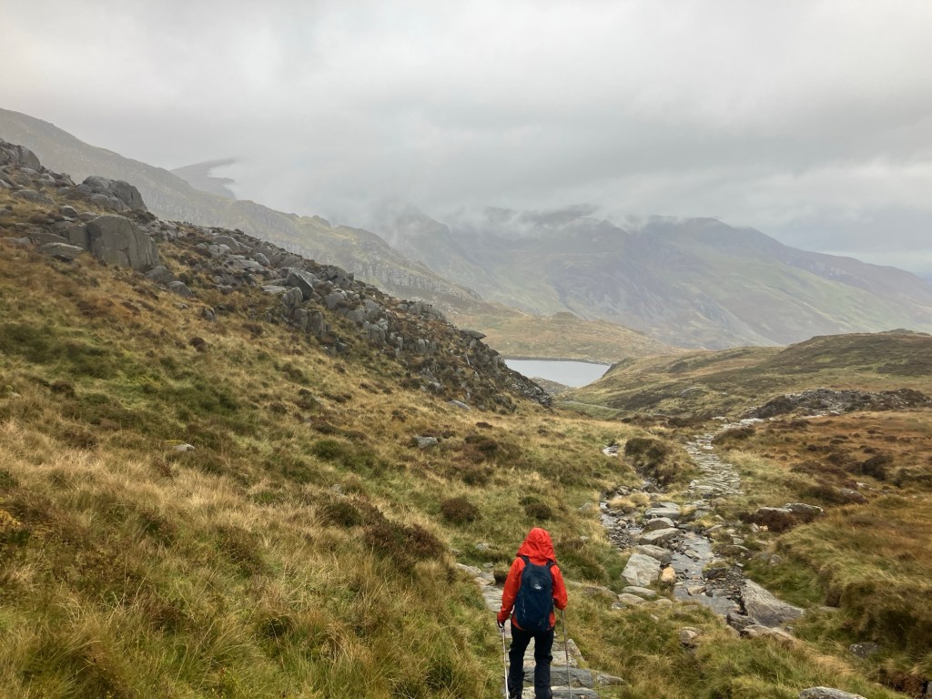 Tryfan’s south ridge loomed out of the mist as we descended the scree paths…