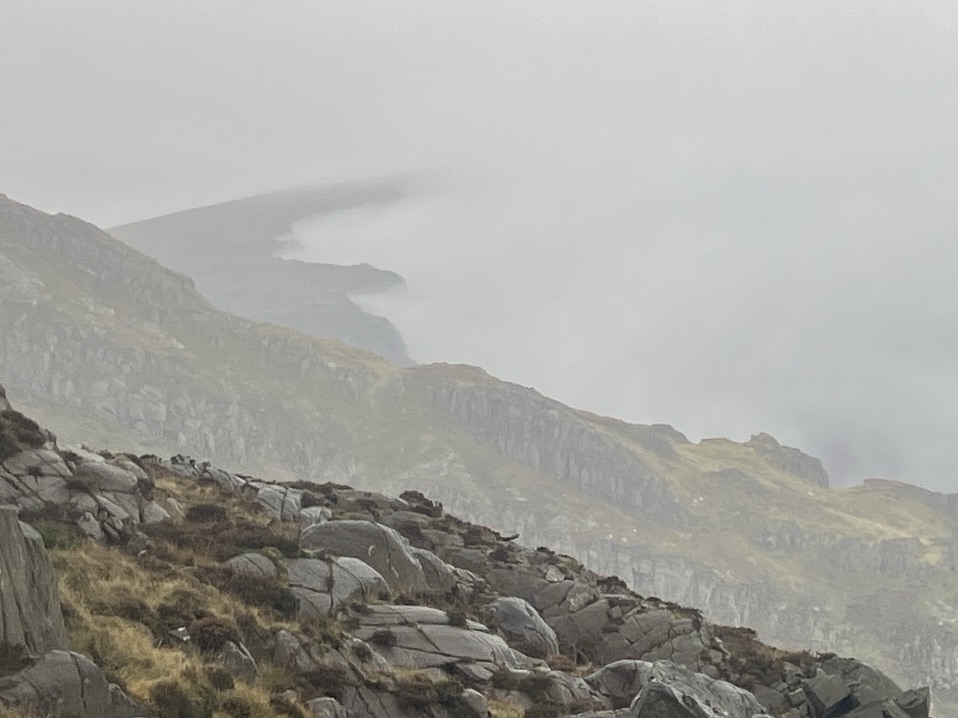 It was cool to see the higher ground clearly, and the cwm brimming with clouds below…