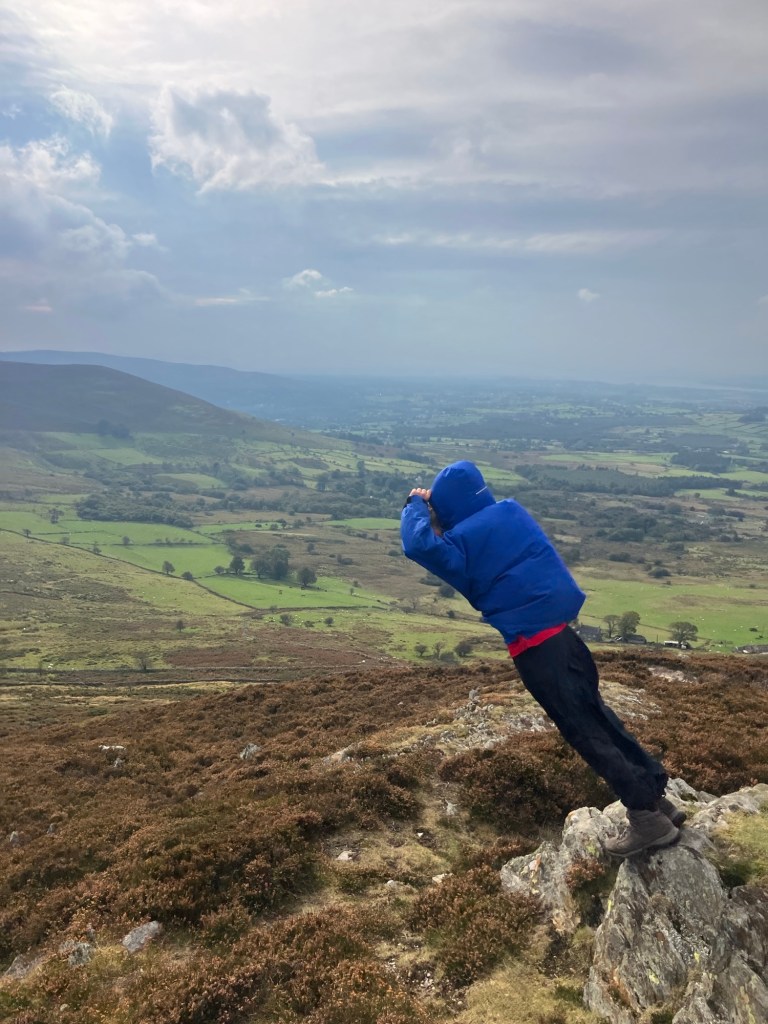We summited Moel y Ci on Thursday, which was a hoot – a low altitude summit, but even I could barely stand up on the summit as the wind roared across it!
