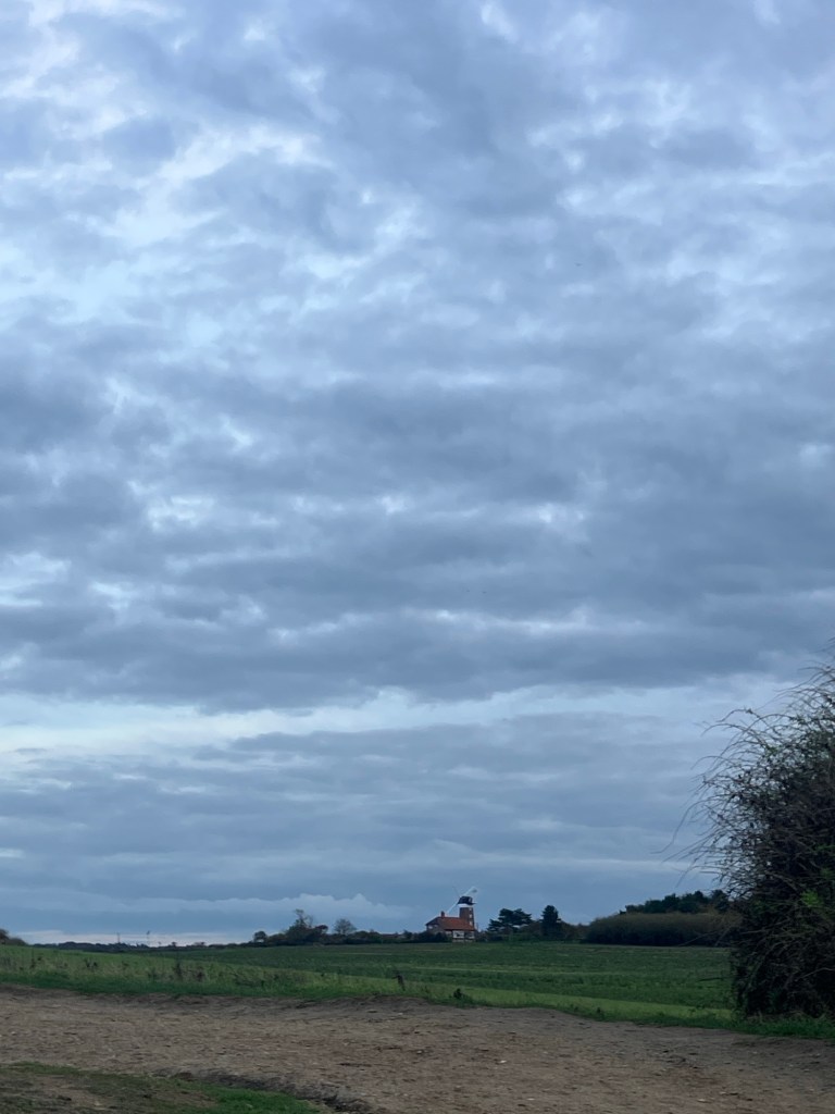 We had a mid-morning break at the small church of Haveringland. It was unlocked and a sign encouraged us to take a look around (although we didn’t go up the tower). We couldn’t help being impressed that the old wooden pews all have had mini electric heaters installed under them!