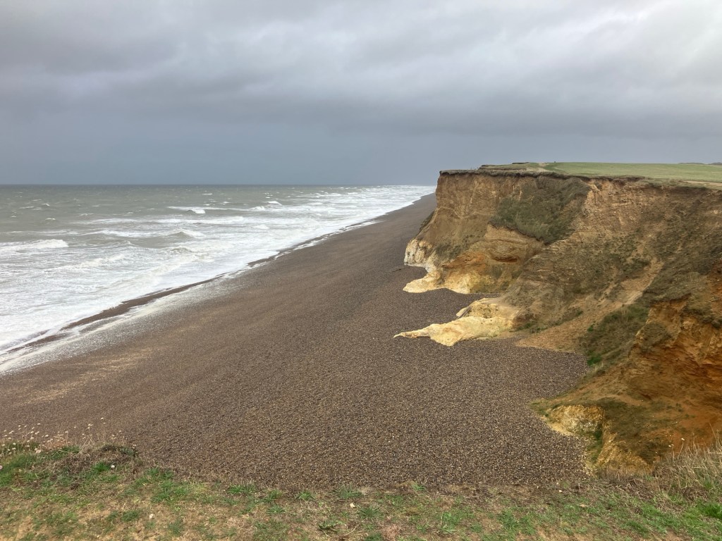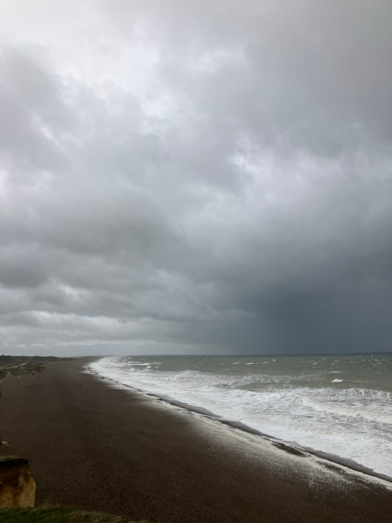 After spending a small fortune gathering a few supplies from the village shop, we took a stroll to the beach to stretch our legs and work up an appetite. It felt like a completely different place to last night. We could barely stand up in the wind as good sized waves crashed up and down the beach. The skies were fantastically dark and ominous.