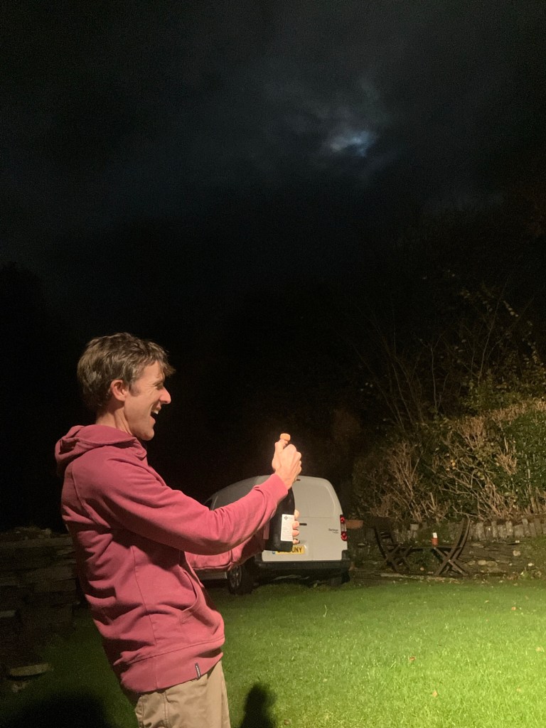 After the show we walked out along the pier under a bright ‘Beaver’ full moon, as the temperature was an astonishing 18°C! Back home at The Cottage, we rounded off what had felt like a non-stop day with a final little celebration as the full moon came and went under the clouds.