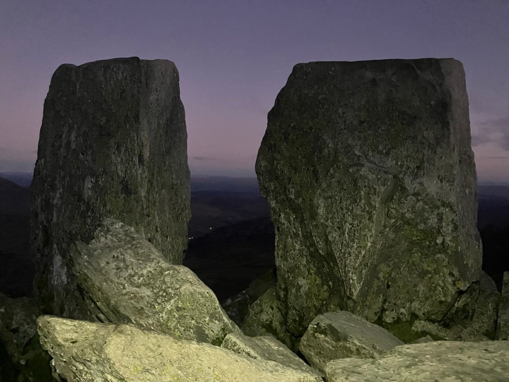 I could still see the headlights of cars on the A5 far below as I sat on top of the summit rocks, about 50 minutes after setting off from there.