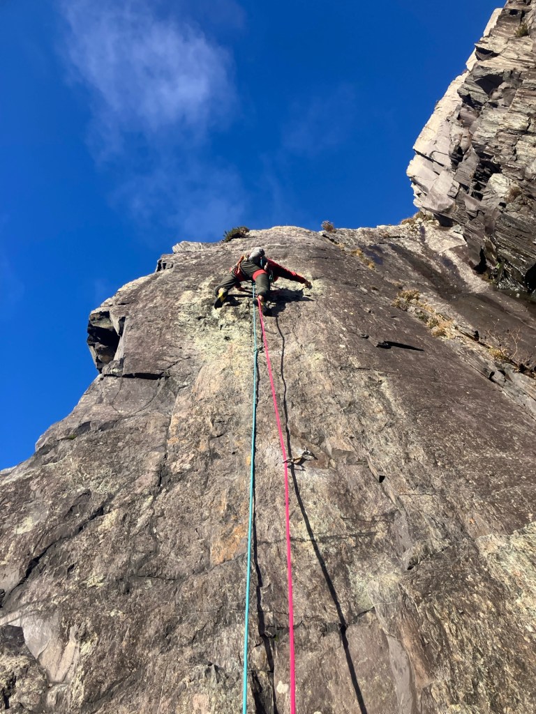 It was actually really warm on this section of rock, even though a few metres to the left, the wind chill was freezing! It’s always a great climb, but today, it felt glorious moving on the rock.