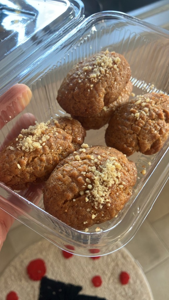 I walked down to the village bakery at lunch to pick up some bread, and was delighted to ‘re-discover’ the little Greek Christmas cakes that we’d enjoyed (and probably overdosed on), on previous winter trips to Greece. They are like soft cookies that are oozing with honey and generally dissolve in your mouth.