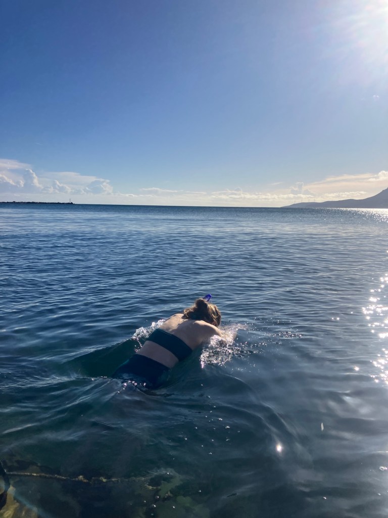 We therefore had to make it look as though the water wasn’t too cold and I couldn’t go through my usual procrastinations, but on the plus side, we were soon in and snorkelling with the fish rather than shivering on the side trying to commit!