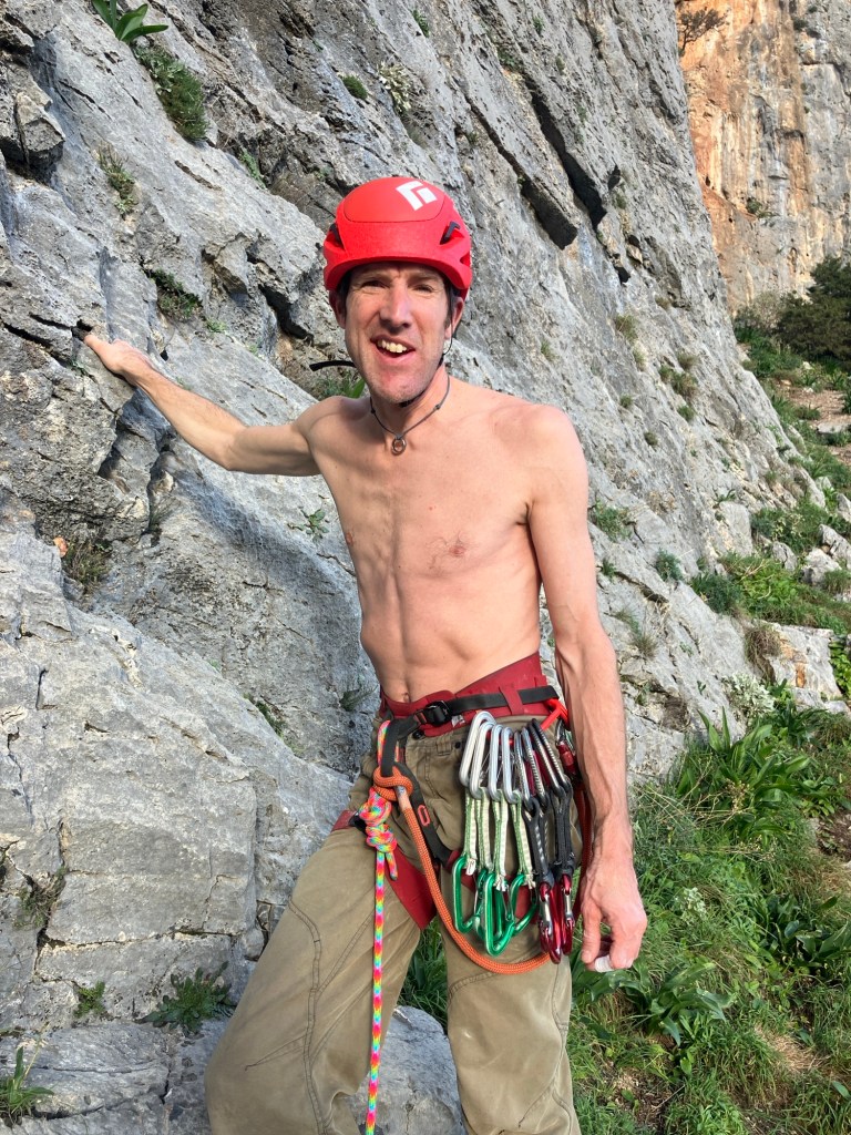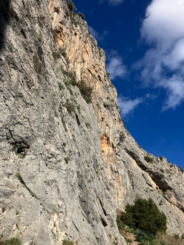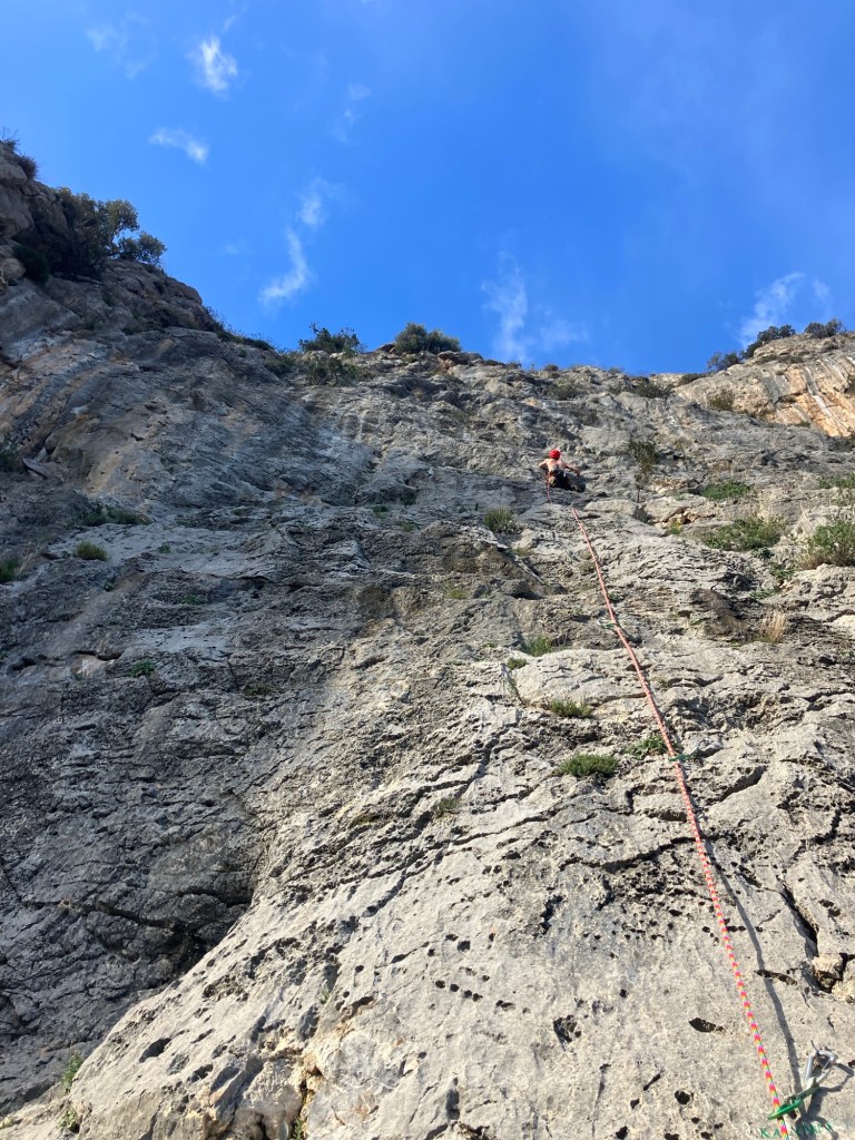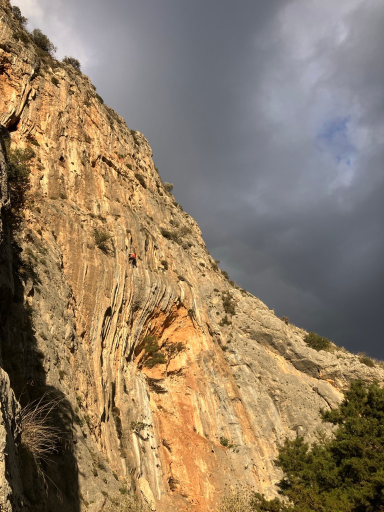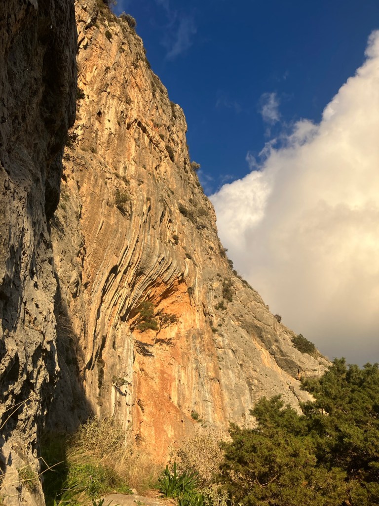 Around 14:00, we drove up the hill to the Manikia climbing area and set off up some really nice climbs on the ‘Rainbow’ Sector.