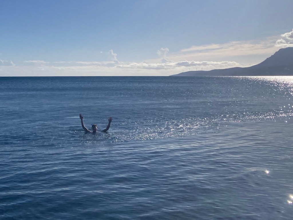 At the beach, we were starting to think that it was a little bit breezy, when we were joined by a couple of elderly locals, who stripped off and got in without fuss! Another woman pulled up in a car, wished us a happy Christmas and an enjoyable swim before getting changed and swimming off…