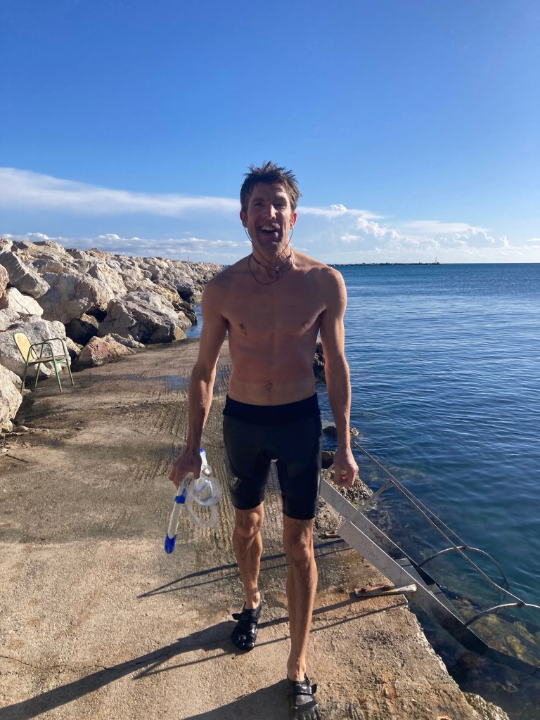 It was certainly warmer than Wales and the sea was wonderfully clear and full of fishes to dive down and swim with. A fantastic and friendly way to spend Christmas morning.