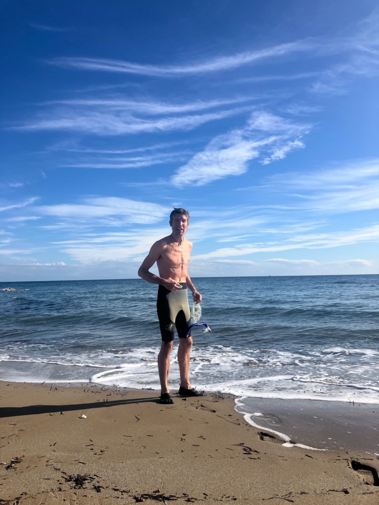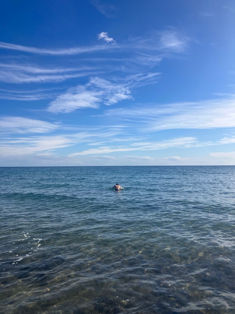 Our final day of ‘activity’ here on the Greek Island of Evia. As has been a theme of the trip, it started with the short walk from bed to the roof top terrace for a morning brew and some sunrise appreciation. The wind had picked up today making it feel a bit cooler than usual, but still a delight to be out there. It almost put us off going down to the beach for a swim, but as we won’t be getting conditions like this for a while, back in Wales, we decided to head on down to the coast.