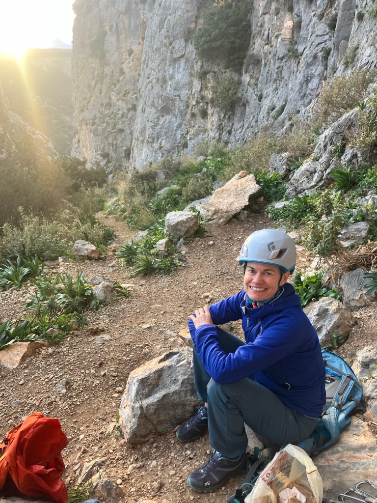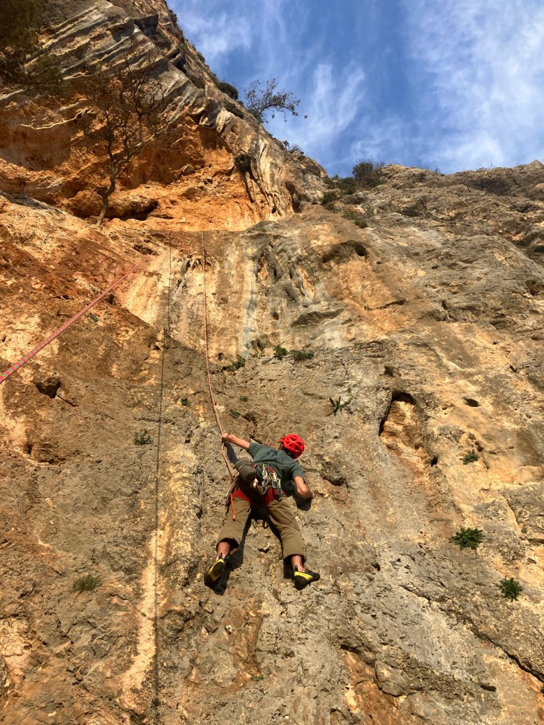 We were back home in time for lunch, then swapped kit and continued up to the Manikia valley where the bulk of the climbing is. The long slabs that we’d first climbed on were empty, so we went there to climb the novelty of some 40m pitches. The rock was great and I’m starting to get used to the feel of it, which made the grades feel easier!