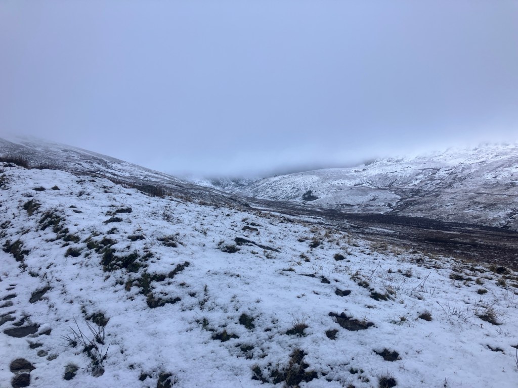 I thought that I’d have to change my plan of a hike up to the ‘secret bothy’, as I wasn’t sure that the road would be passable in a minibus, but after checking the snow level against the road altitude, we decided that we’d make it, and luckily enough, we arrived at the top car park unscathed.