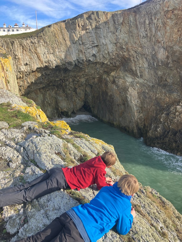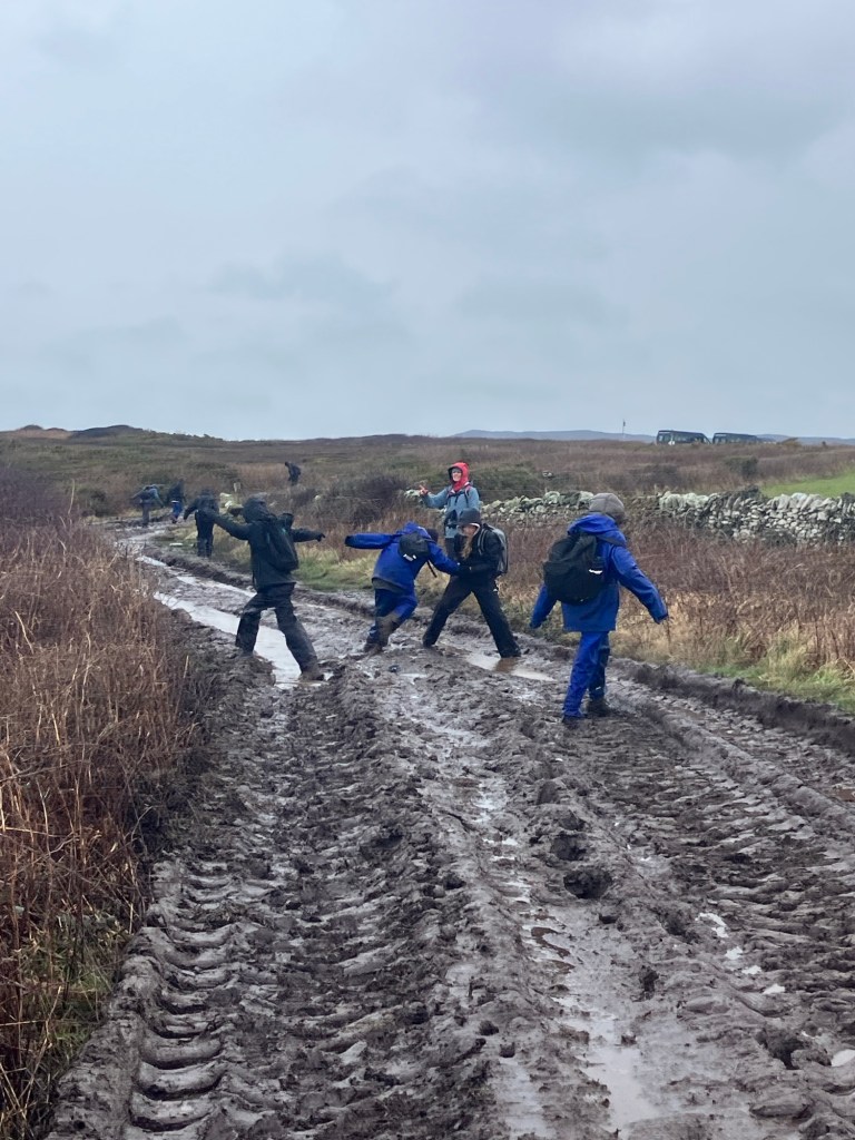 We cut short today’s journey as the offshore gales were threatening to blow us off the cliff edges (south stack is not the place to be peering over the edge in an easterly gale!). And besides, in true student fashion, a few characters made the mistake of ‘turning their back on the ocean’, early on in the walk and were suffering from wet boots and trousers! The final track up to the waiting minibus also caused plenty of drama – and the need for yet another hosing down on arrival back at base!