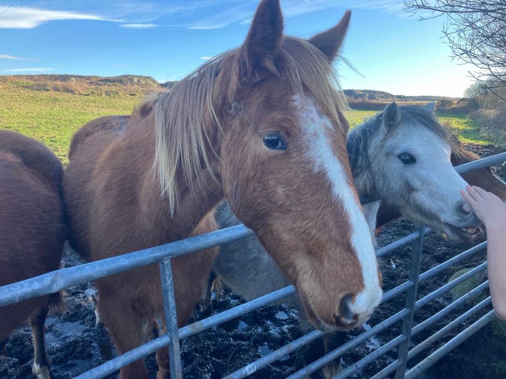 The main challenges came in the fields below the mountain. These friendly, but rather large dudes, were blocking our way. We threw a few apples to distract them, but still couldn’t get the gate open! In the end we were rescued by the farmer who lured them away from the gate with a hay bale. Without the horses, we finally had free passsage!..