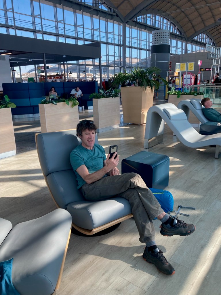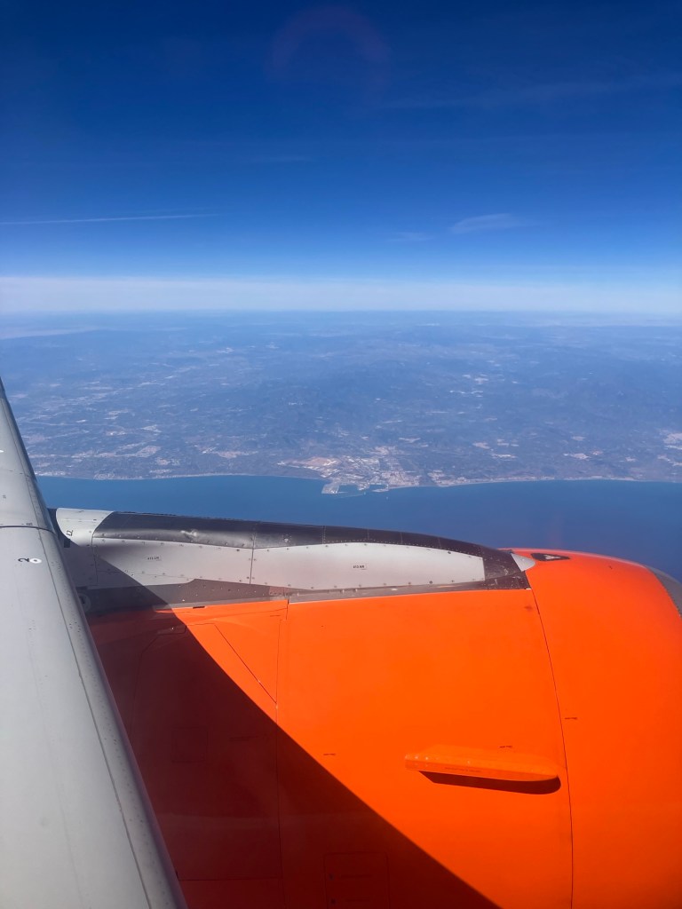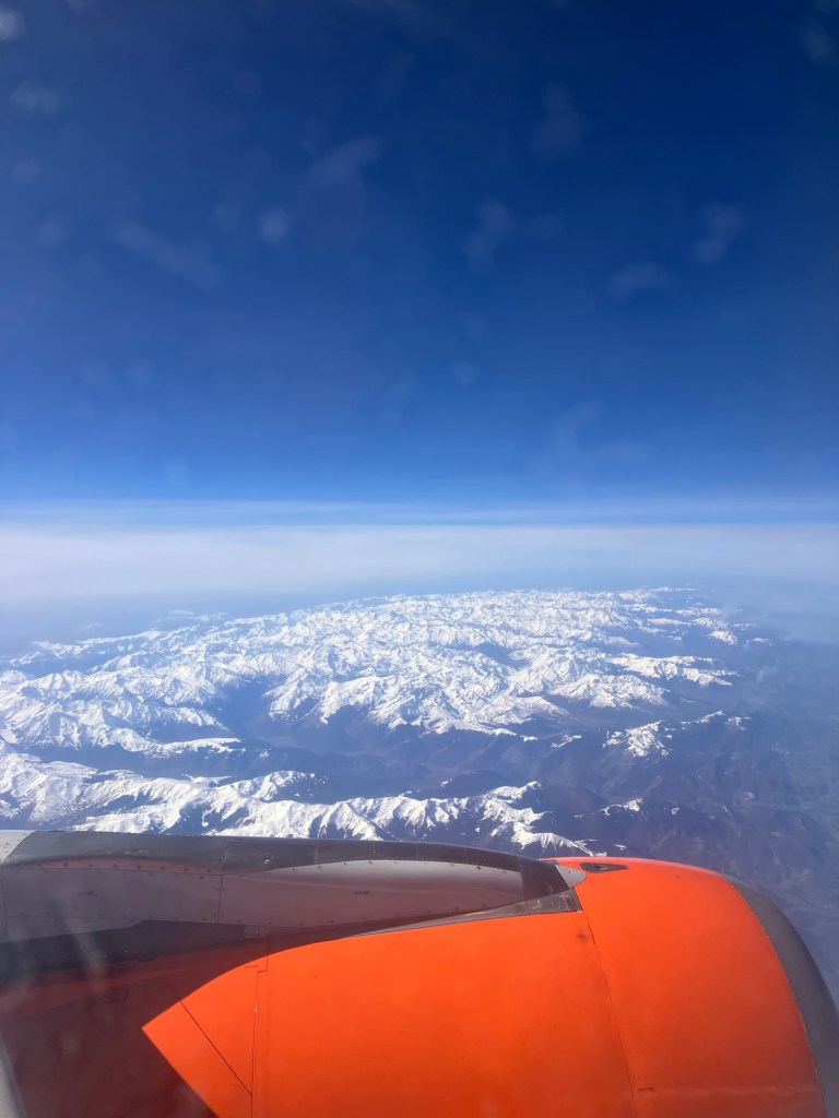 After joining a meeting online, at Alicante Airport, we finally left the blue skies of Spain.