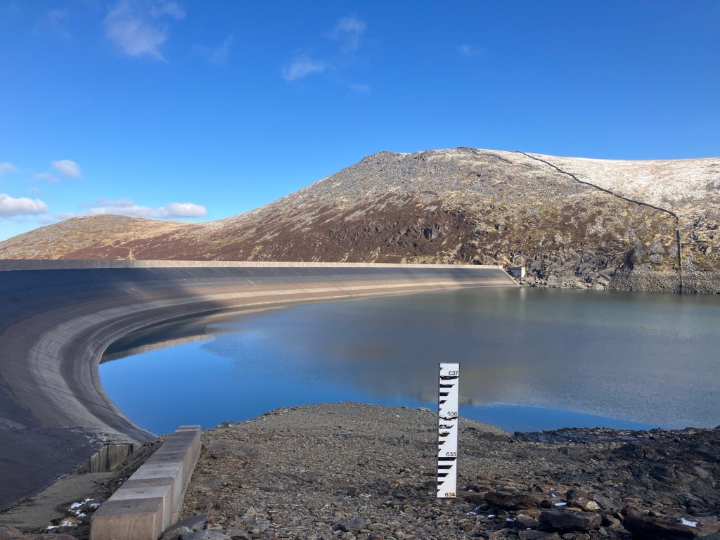 The Marchlyn Reservoir was very low. The views were far reaching with super air clarity.