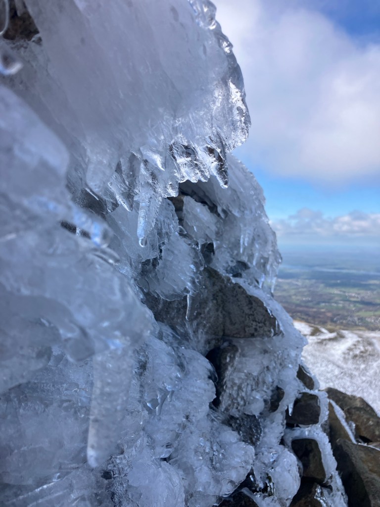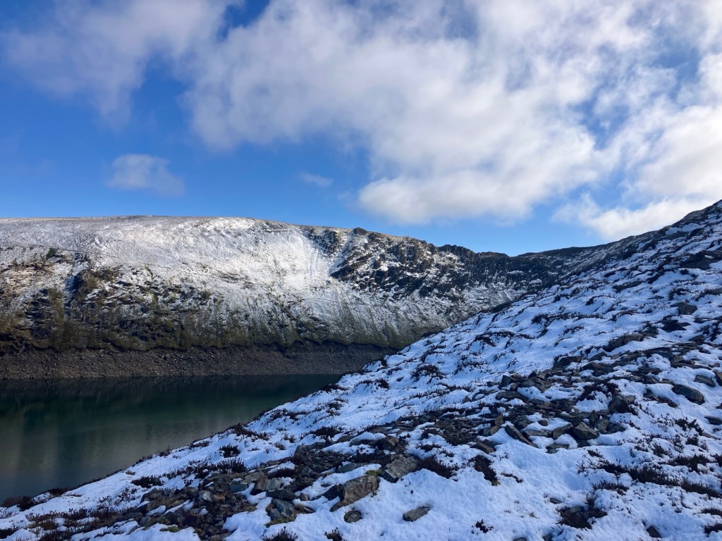 A marvellous 10km loop that takes in three good summits, with a short ridge crest to follow and some rocky scrambling. Good mountain skills terrain! On the walk down, we passed yesterday’s snow men still standing proudly on the grass…