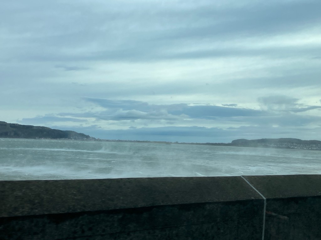 We’ve had a very wild few days this week, with winds strong enough to cancel my planned lessons. Driving over to Llandudno on Thursday morning, the sea looks incredible, with water up in the air and being blown across the road. John and I went searching for some sheltered surf in the evening, after a day sheltering in the climbing wall, but had no luck this time. Wortha look though!