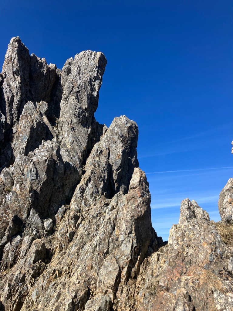 We were pretty fast getting onto the first summit. The views were so good that we stopped for a mini lunch and drink so we could take it all in, and steel ourselves for the crossing of the next, most exposed, section…
