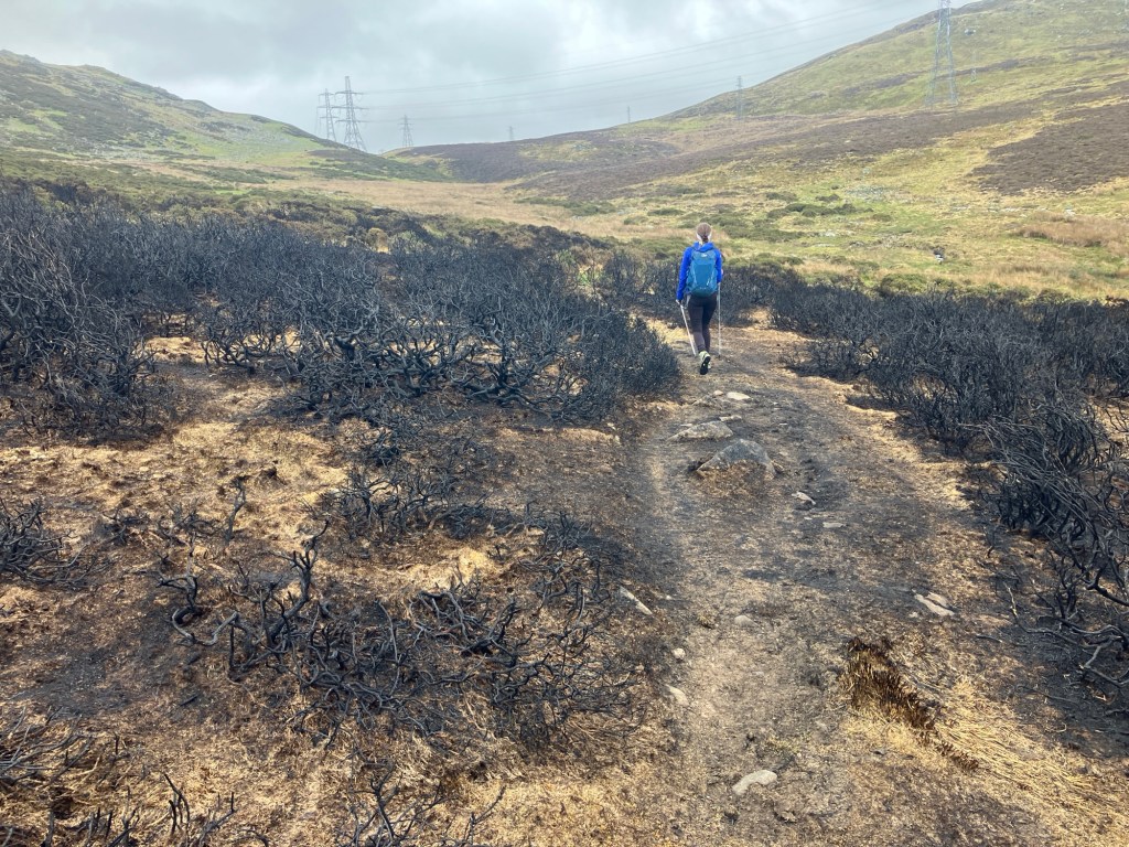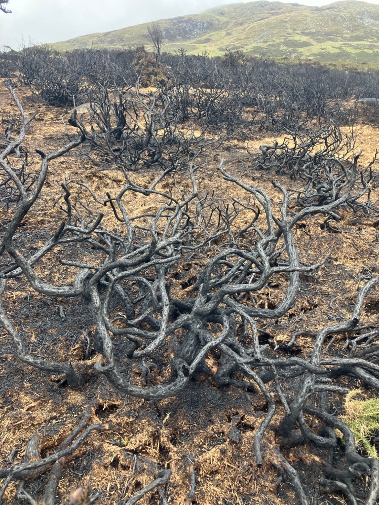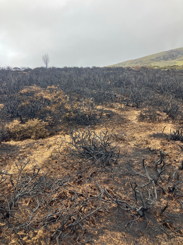 Last week, on our way up Foel Grach, we could see (and smell) a lot of hill fires from this direction. Today, we found the scene of the burning – it still smelt freshly burnt. I’m not sure on the who or why, but shoots were already making a comeback from the charred ground.