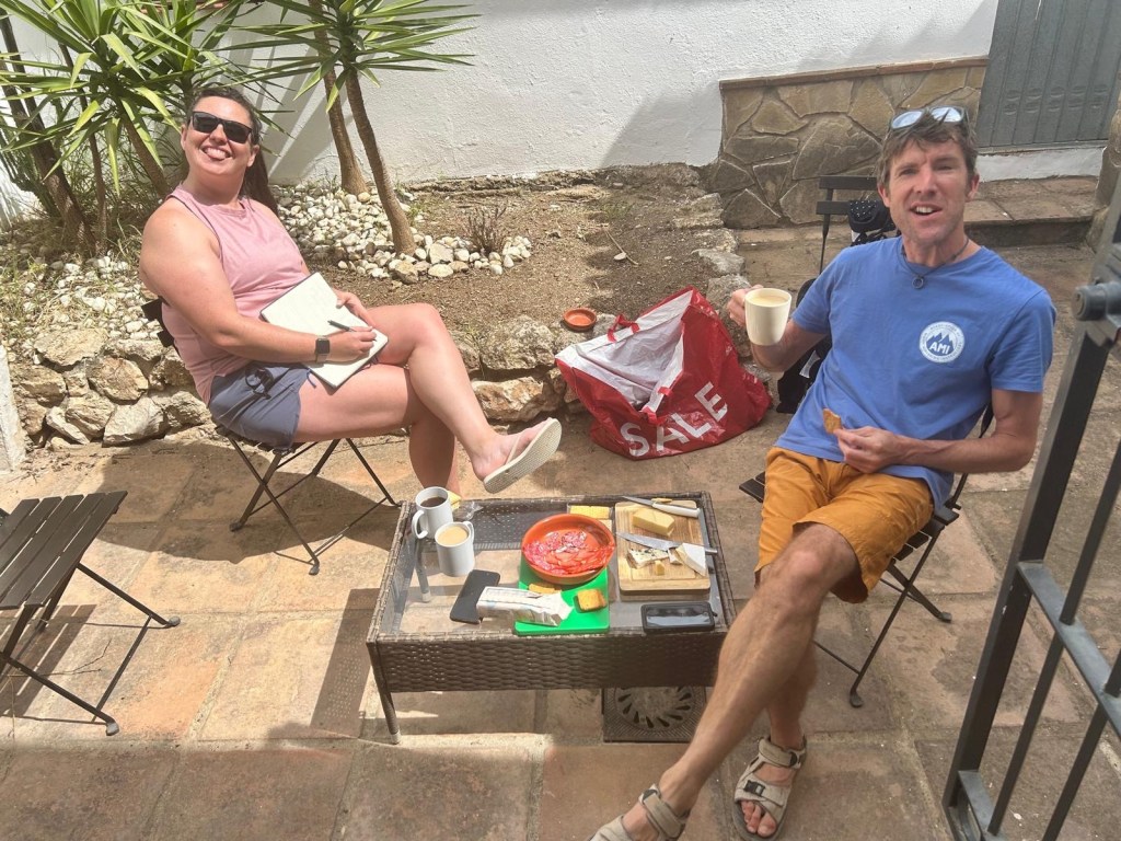 Once reunited, we then took a drive to the north of El Chorro, over the impressive dams and past the big reservoirs. We had planned on a swim at the beach there, but the team voted to return back to base, for a shower and some rest as they were feeing a bit frazzled from the heat. At the ‘staff house’, Dwyn produced a fine cheese board to restore our energy and after a swim in the pool, the team produced their best effort at dinner…