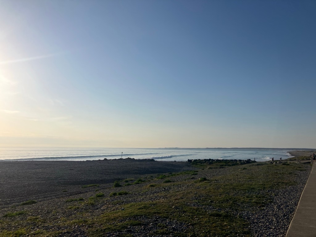 You can’t really tell from the photos, but incredible lines of corduroy waves were arriving in gentle sets. We met John at the parking area and hurriedly got changed as the ‘golden hour’ of light shone across the beach.